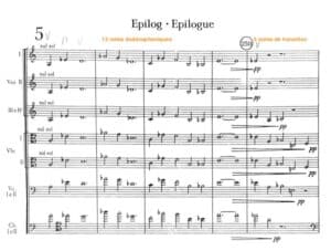 C’est la partie de l’œuvre qui marque le point culminant structuré par 32 accords constitués des 12 notes du dodécaphonisme à la fois horizontalement mais également verticalement.  Cette séquence musicale est écrite avec une unité rythmique de tous les instruments.  Les 32 accords sont construits avec des rythmes qui sur la fin vont se rallonger pour aboutir à l’unisson de l’épilogue.